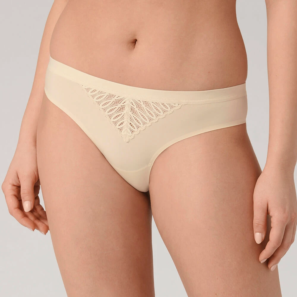 Der Brazilian Slip aus der Serie Aura Spotlight mit raffinierten Abschlüssen und super weichem Materialmix sorgt für einen besonderen Auftritt und maximalen Tragekomfort.