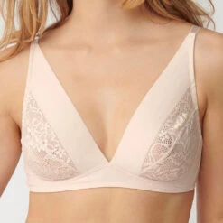 Dieser bügellose Plunge-BH mit All-over-Spitze kombiniert perfekt Komfort und femininen Stil.